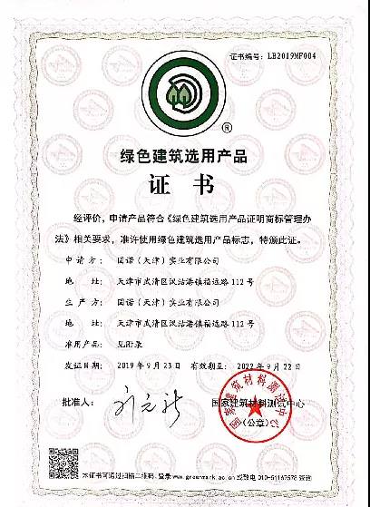 并且該產(chǎn)品符合《綠色建筑選用產(chǎn)品證明商標管理辦法》相關(guān)要求,獲得綠色建筑選用產(chǎn)品證書